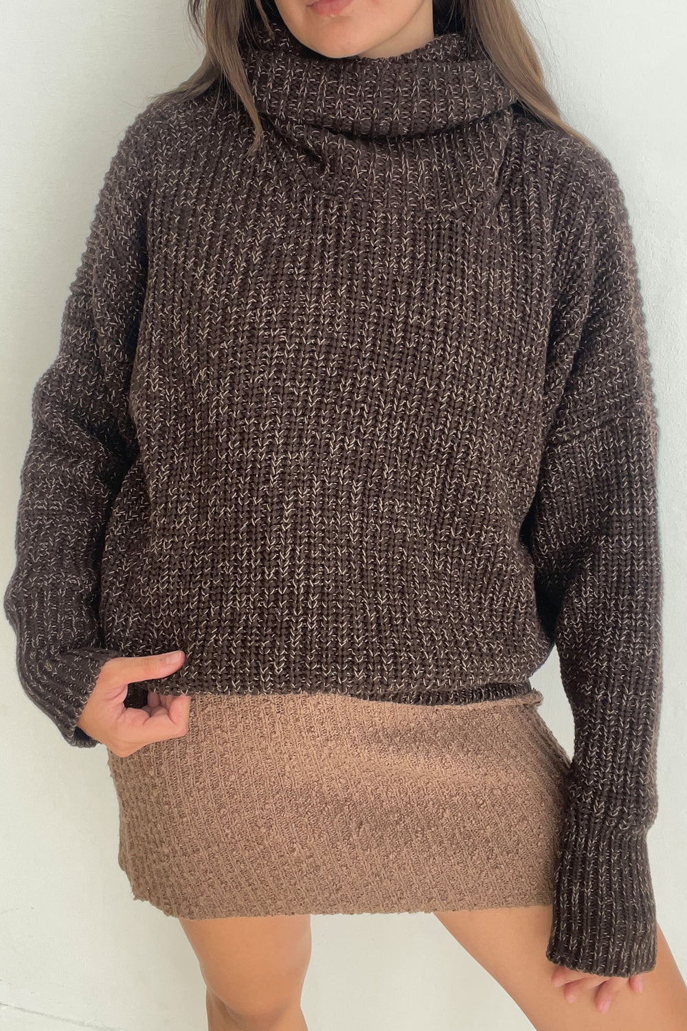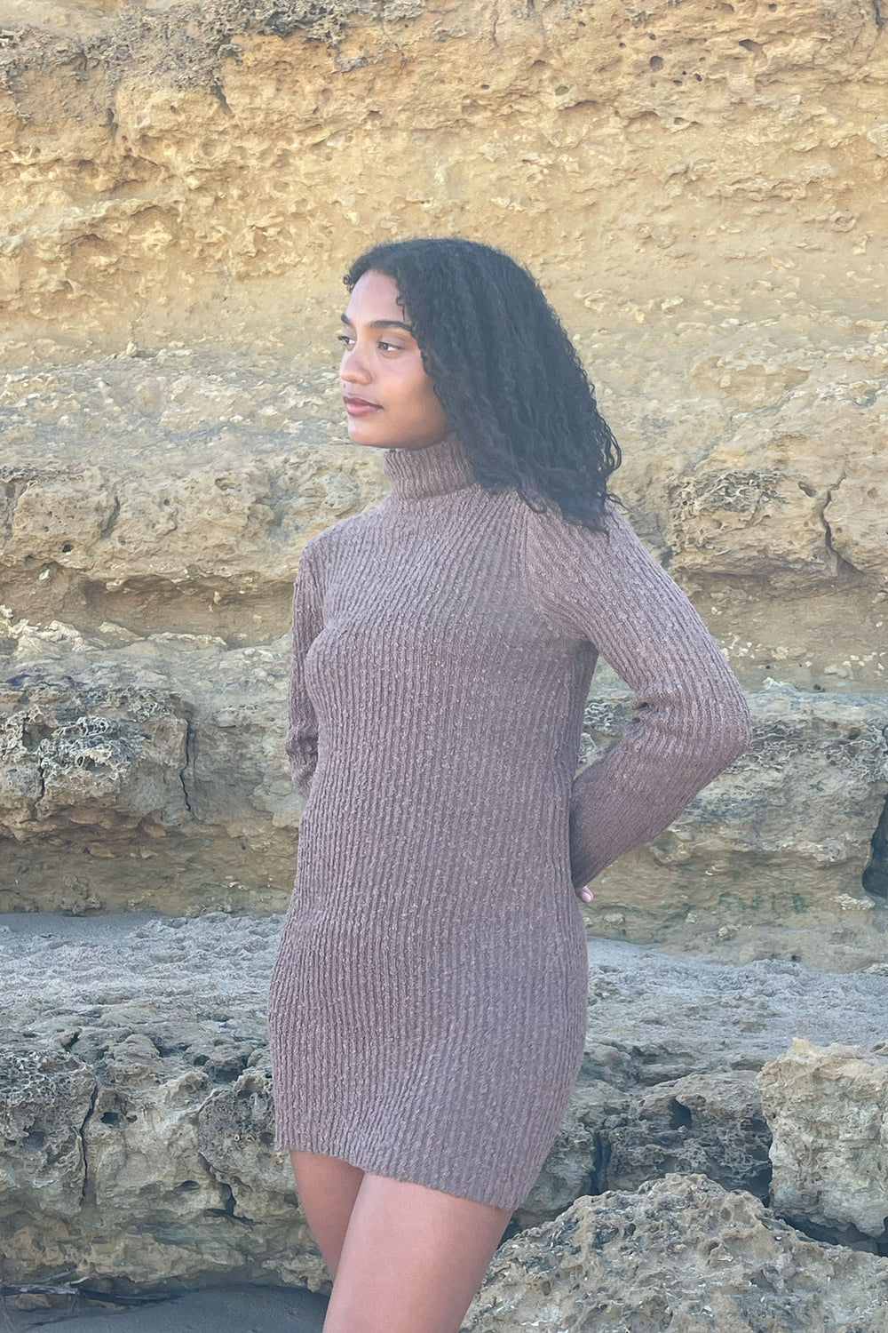 The Olivia Dress is where cosy meets effortlessly put-together. Its high neckline adds warmth and an elevated look, while the softly flared sleeves bring gentle movement. Crafted from a rib-knit fabric that drapes beautifully, it’s perfect for wearing on its own or layering to create looks that flow from daytime to evening.