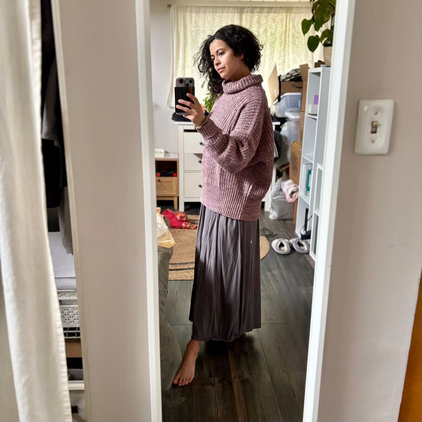 So soft and cozy, and my absolute favorite color I have such a hard time finding! I live in Southern California, so this has been perfect for those chilly days while still being breathable. I'm not sure how to describe it exactly, but it just feels good to wear.