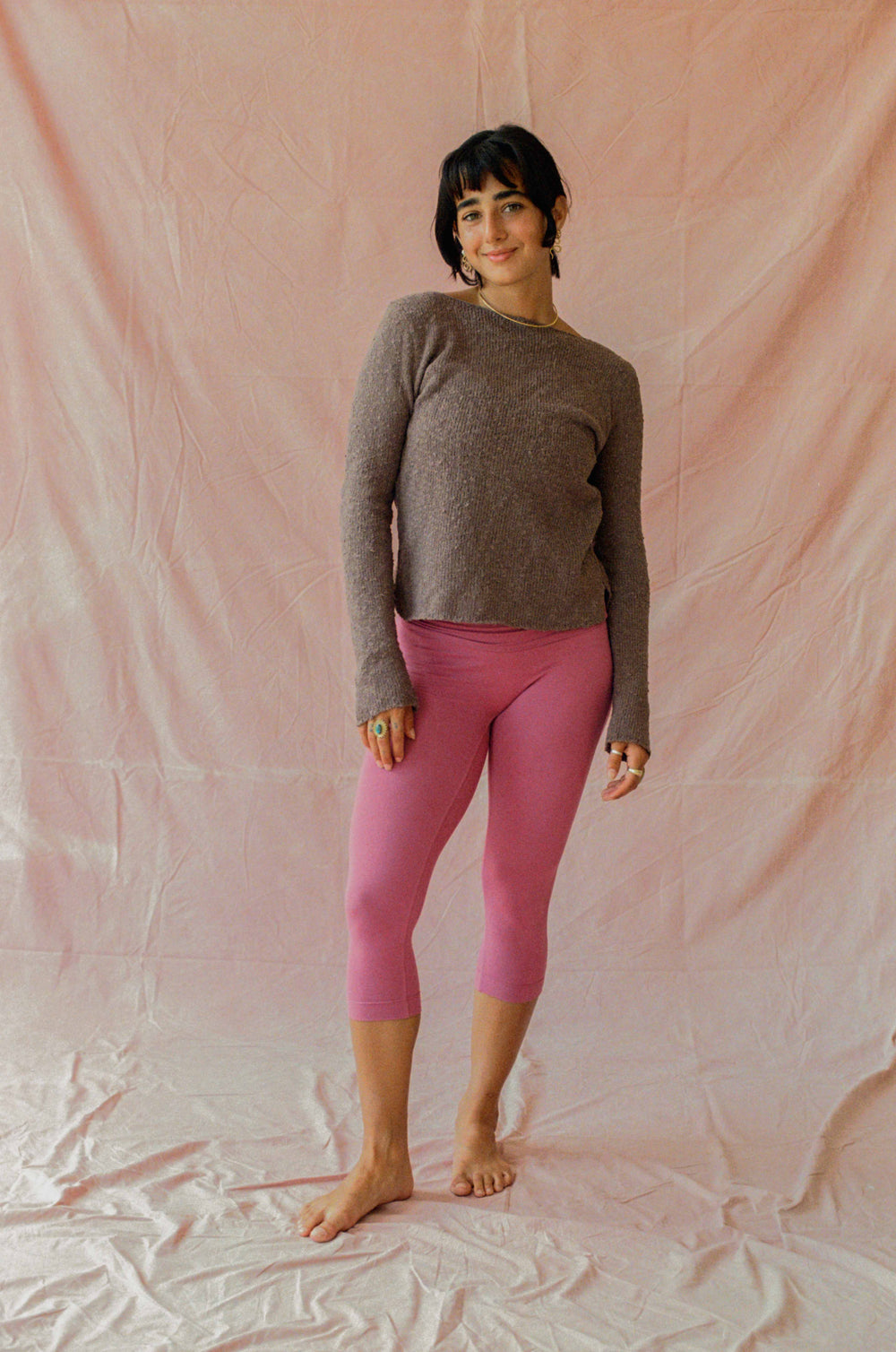 The Eden Capri brings simplicity to your daily routine, featuring a seamless front, foldable waistband and organic cotton design. Their minimal mid-calf silhouette feels supportive, yet stylish.