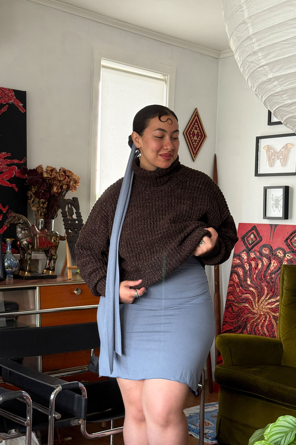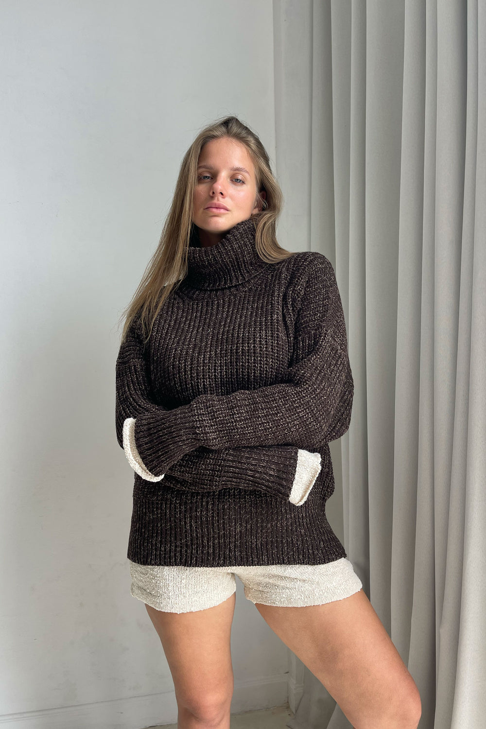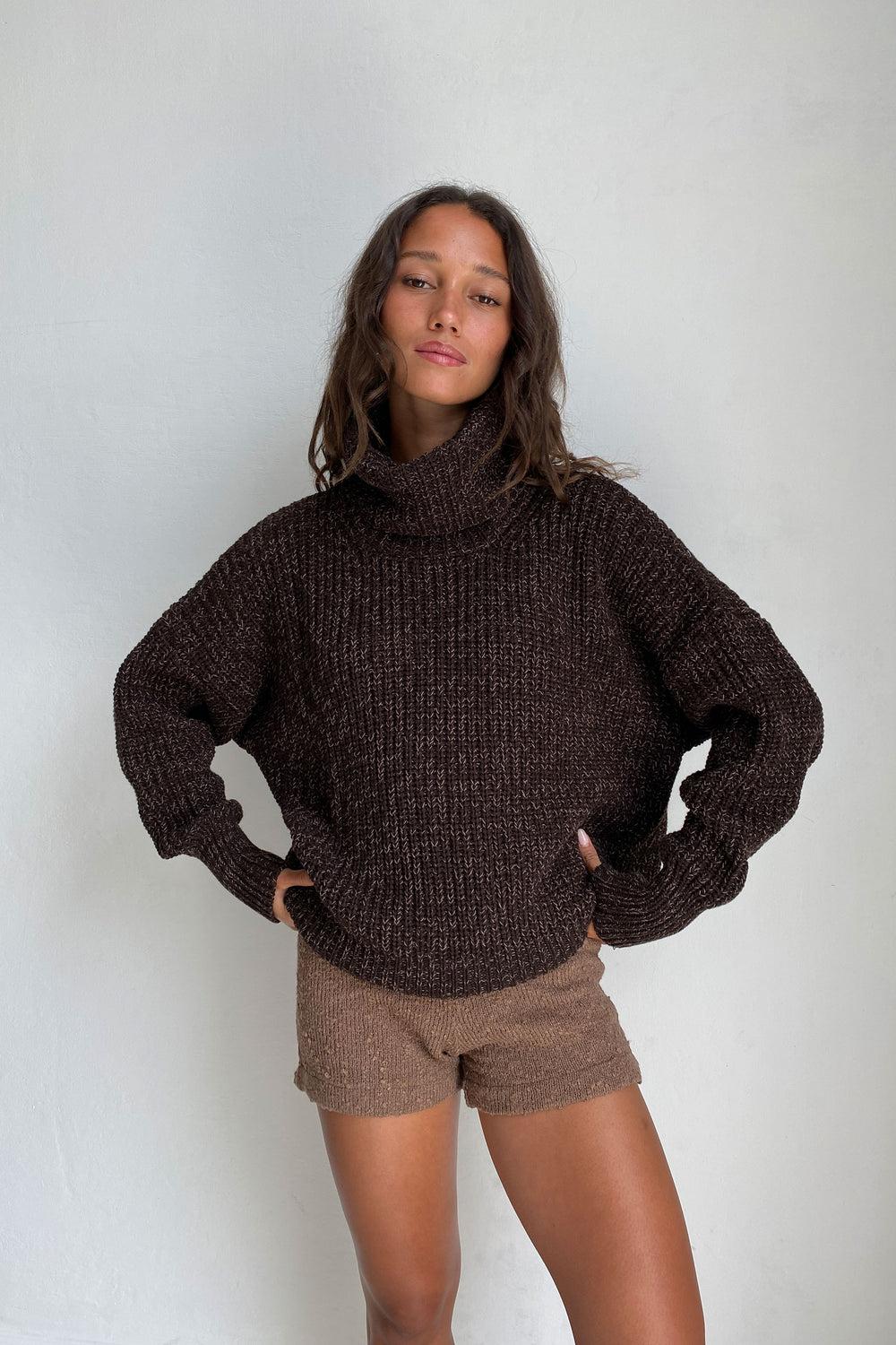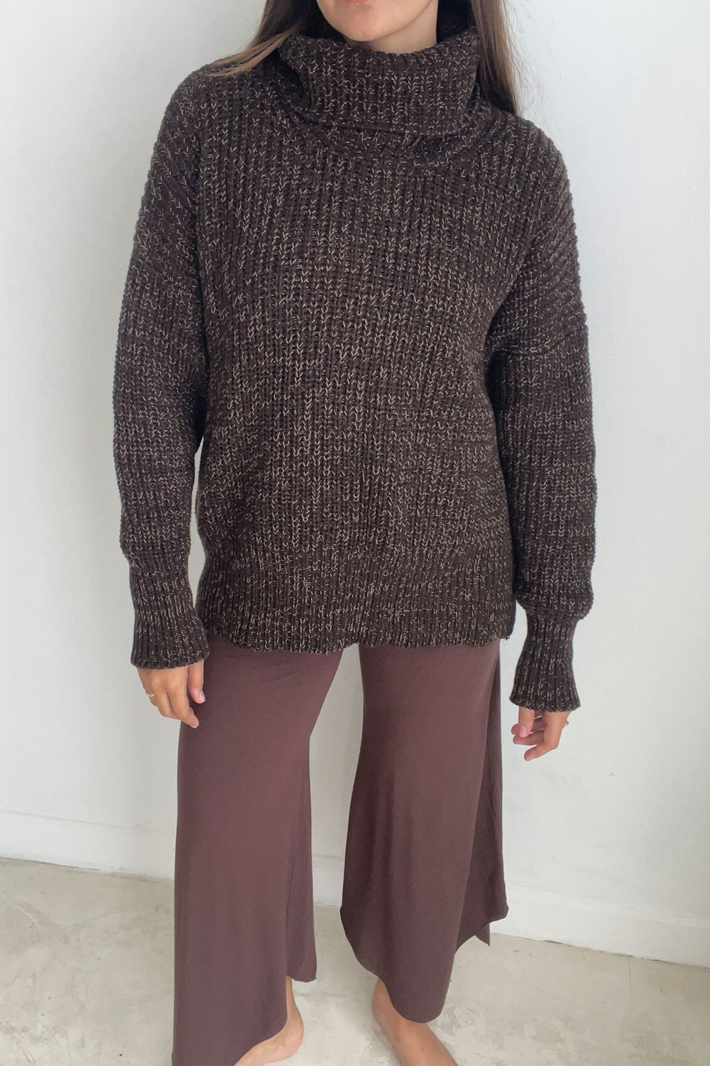 Our Paloma Jumper is a classic piece designed to keep you cosy. Made from 100% natural fibres with a chunky texture, this jumper is perfect for layering or wearing solo. The ribbed turtleneck and cuffs can be worn folded or extended, allowing for versatile styling options. Our Paloma Jumper is available in four warm colourways: Vanilla, Dove, Lavender & Coffee. This one-size-fits-most jumper is ideal for cold or chilly weather and can be effortlessly paired with other Indigo Luna pieces.