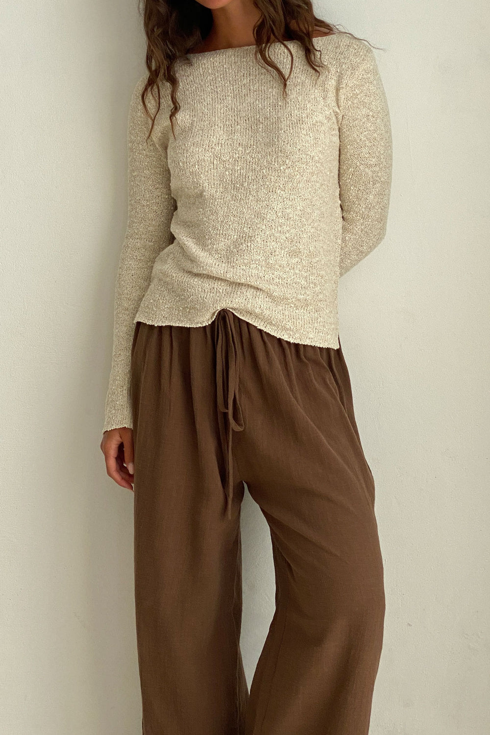 Say hello to your new favourite knit top. With an elegant, feminine boat neckline and softly tapered fit, the Olivia Longsleeve feels relaxed yet refined. The subtle side splits and minimal cut make it ideal for layering, letting you move with ease from morning coffee to evening plans.