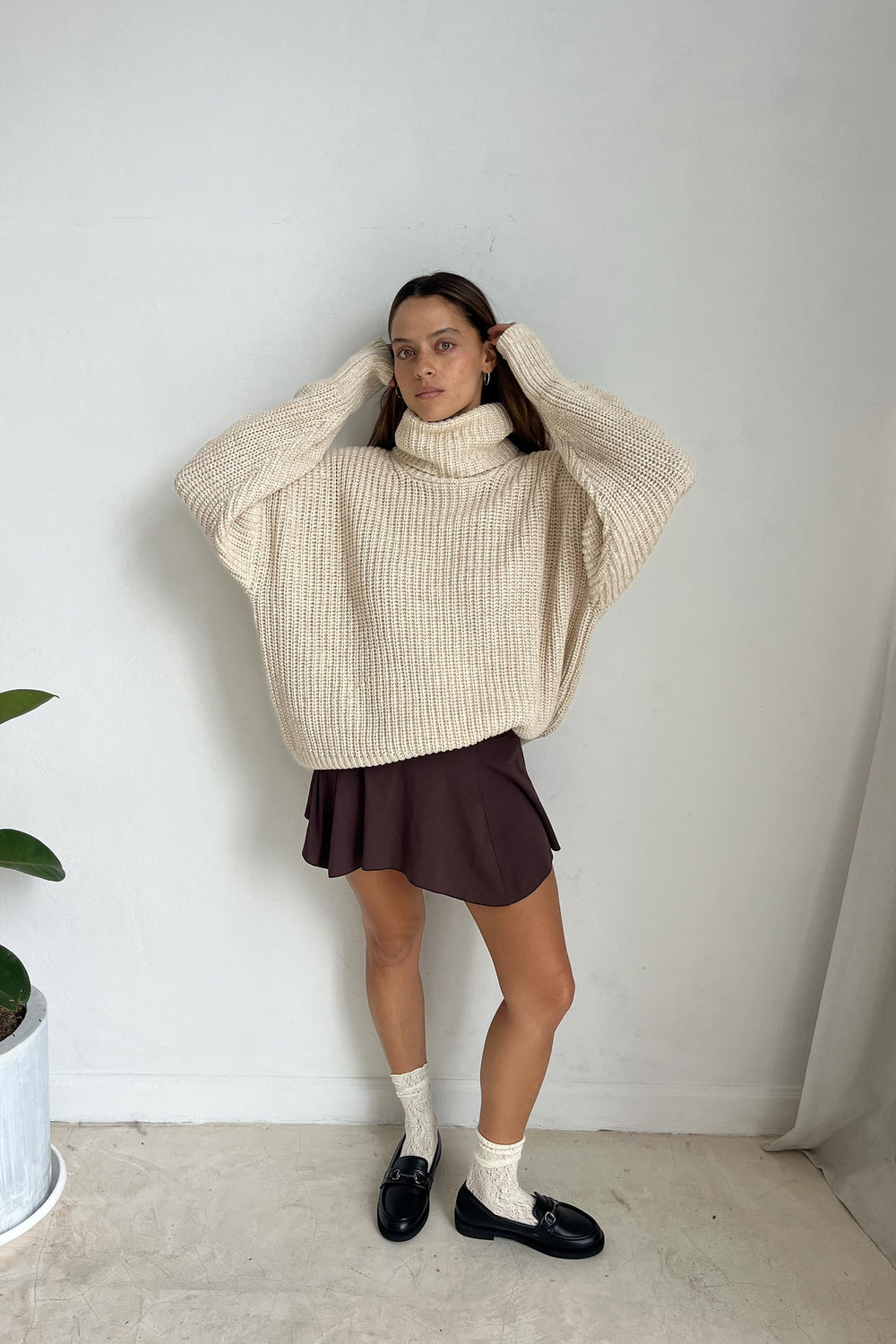 Haley is wearing size S/M. Bust 87cm (34.25”), Waist 63cm (24.8”), Hips 92cm (36.22”), Height 172cm (5.6”) | Size S/M