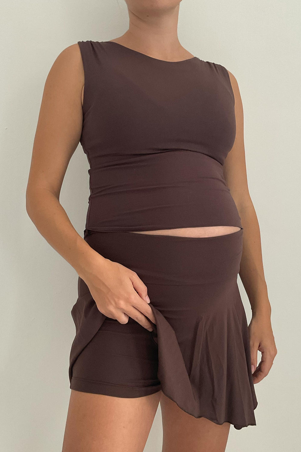 The new Layla Skort brings together our signature folding waistband with a flowing hemline and hidden shorts. Made with Plant Viscose and a fuller cut than our Earth Angel Skort, we designed this piece so you can move freely.