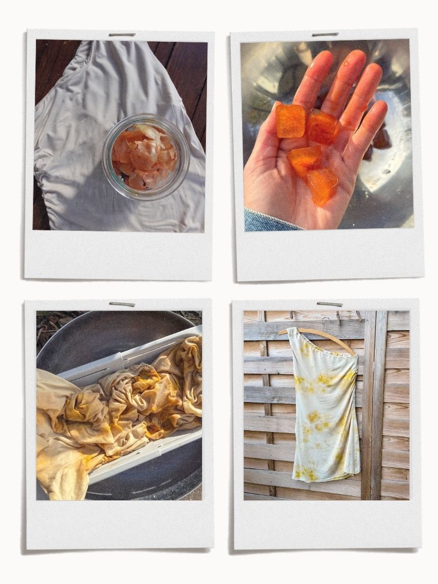 ⟡ Dissolve the alum acetate in hot water, then pour it into a bucket with enough water for your dress to move around freely. Let the dress soak overnight, then move on to dyeing the next day.