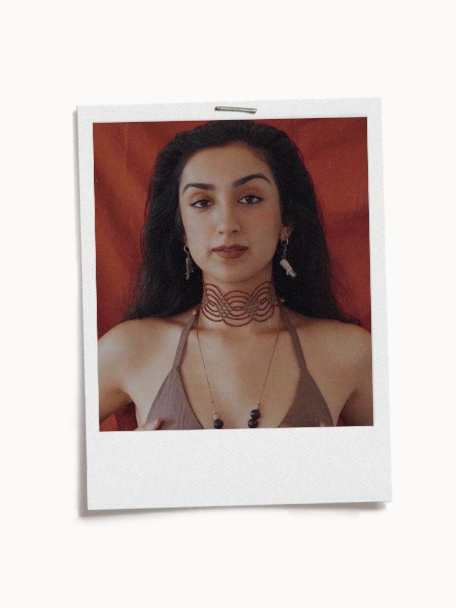 Wherever she travels, she collects pieces that reflect what’s sacred to that landscape: plants, minerals, symbols that root a place in a specific cultural memory. Her jewelry box becomes a botanical archive filled with cardamom pods, peppercorn, and cacao fruit. Each piece, whether it’s a garment or accessory, becomes a reminder of how culture and ecology speak to each other, especially through fashion.