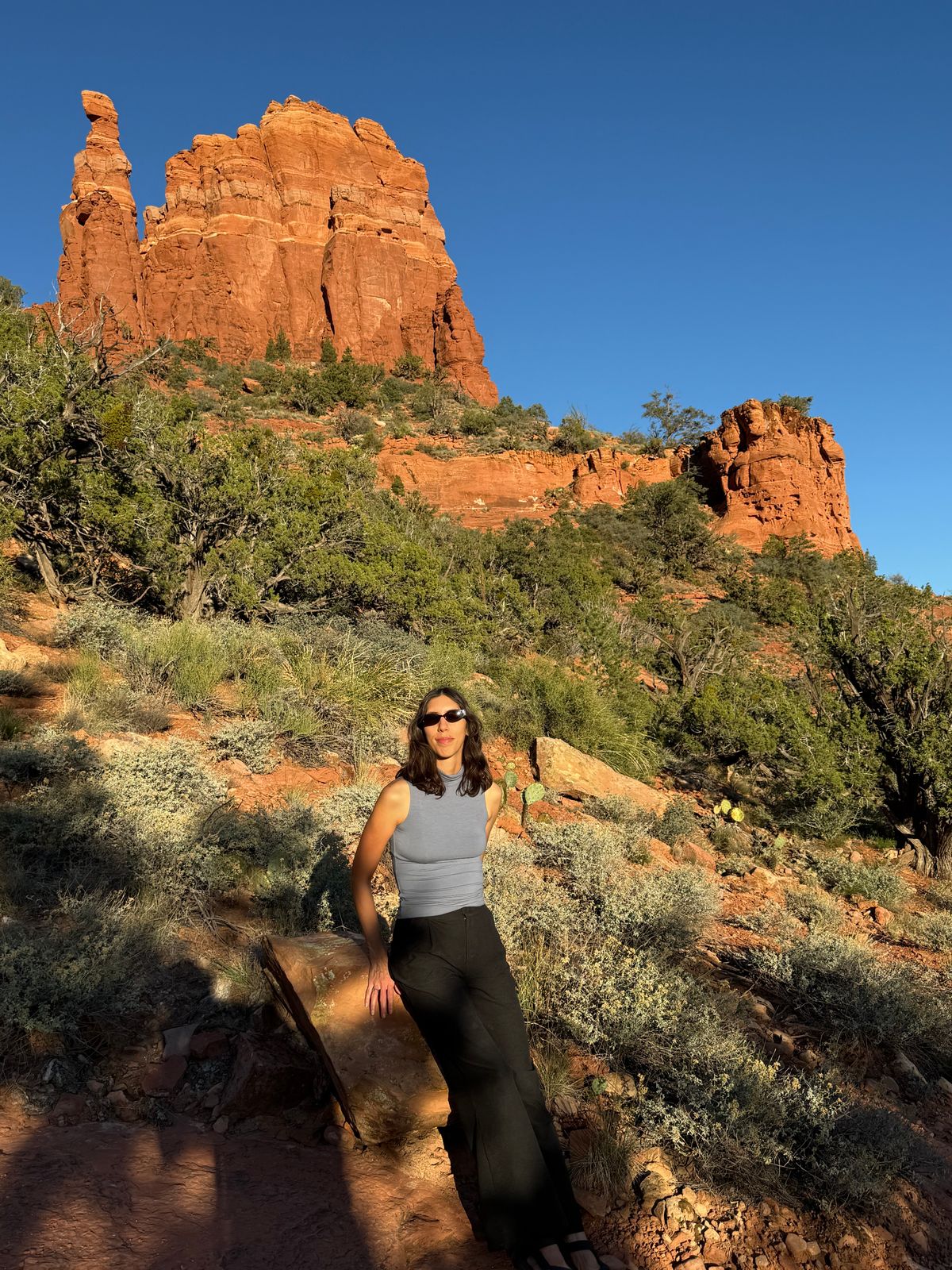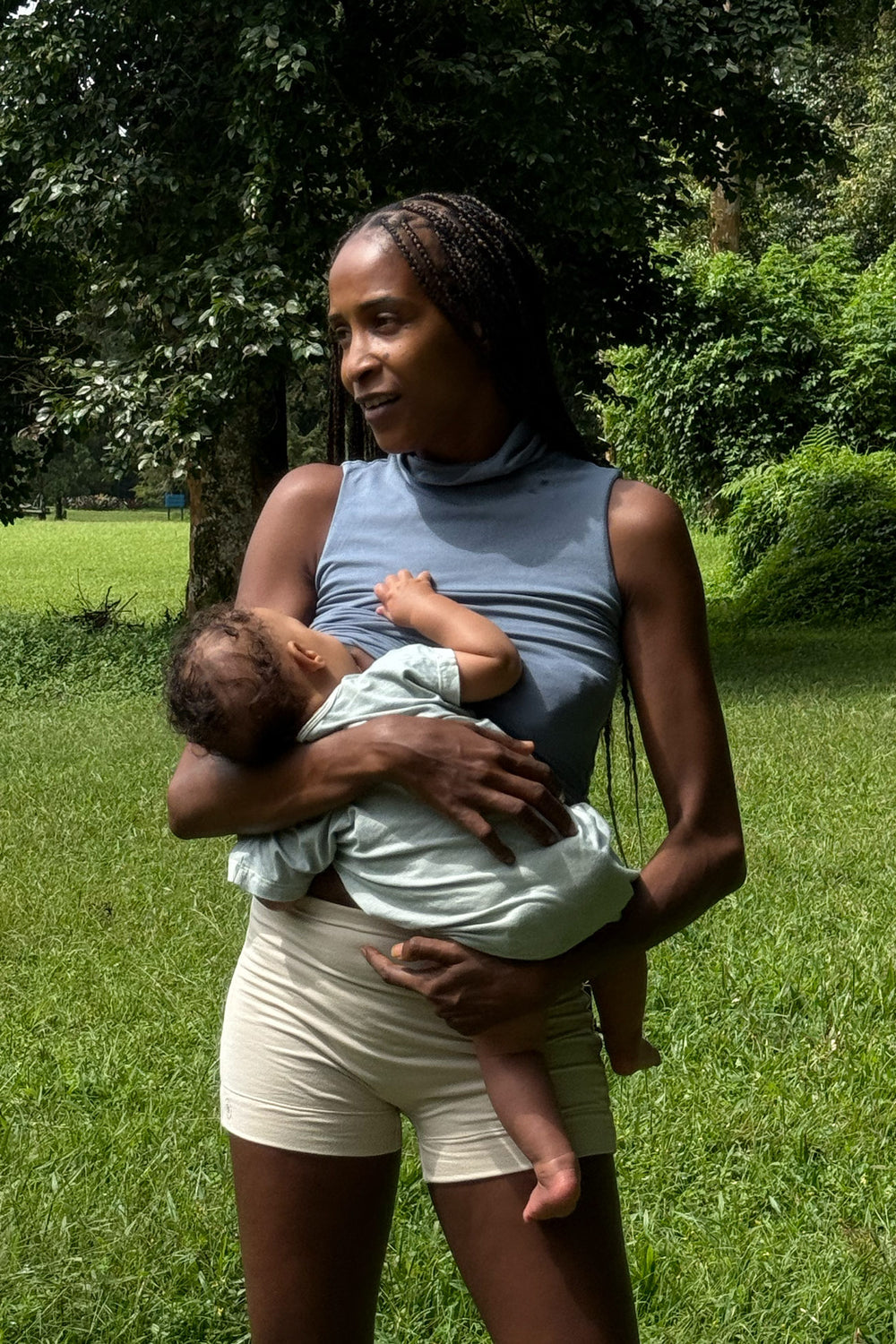 Hitomi shared the importance of creating pieces that wouldn’t anchor her to one aesthetic and would allow her to move through all her different archetypes – so we designed the Ritual Top to honor this need for versatility. It features a modern and flattering high neck top for all of your daily rituals, no matter the season. This piece can be easily styled with every alter ego; pair with the Devotion Pants for a more adventure-ready look, or a low waist skirt for a little romance.